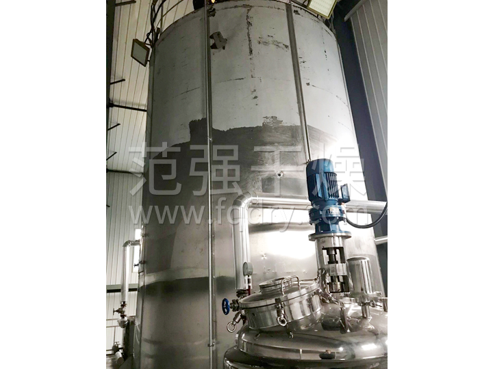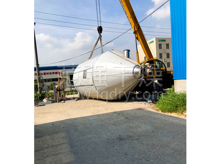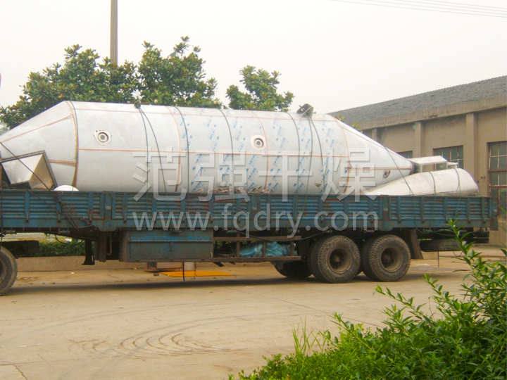 本機(jī)組工作過(guò)程為料液通過(guò)隔膜泵高壓輸入,噴出霧狀液滴,然后同熱空氣并流下降,大部分粉粒由塔底排料口收集,廢氣及其微小粉末經(jīng)旋風(fēng)分離器分離,廢氣由抽風(fēng)機(jī)排出,粉末由設(shè)在旋風(fēng)分離器下端的授粉筒收集,風(fēng)機(jī)出口還可裝備二級(jí)除塵裝置,回收率在96-98%以上。