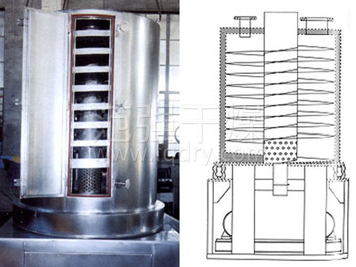 ●物料沿螺旋床自下而上作圓周運(yùn)動的同時(shí),自身也產(chǎn)生跳躍,從而增加了物料與熱風(fēng)的接觸,增強(qiáng)了干燥效果。
