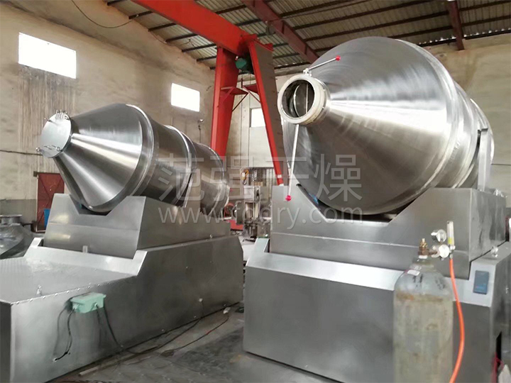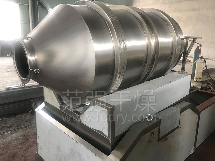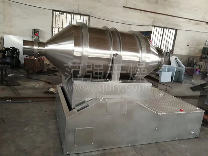 產(chǎn)品概述:二維混料機(jī)主要由轉(zhuǎn)筒、擺動(dòng)架、機(jī)架三大部分構(gòu)成。轉(zhuǎn)筒裝在擺動(dòng)架上,由四個(gè)滾輪支撐并由兩個(gè)擋輪對(duì)其進(jìn)行軸向定位,在四個(gè)支撐滾輪中,其中兩個(gè)傳動(dòng)輪由轉(zhuǎn)動(dòng)動(dòng)力系統(tǒng)拖動(dòng)使轉(zhuǎn)筒產(chǎn)生轉(zhuǎn)動(dòng),擺動(dòng)架由一組曲柄擺桿機(jī)構(gòu)來驅(qū)動(dòng),曲柄擺桿機(jī)構(gòu)在機(jī)架上,擺動(dòng)架由軸承組件支撐在…